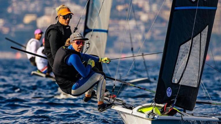 Prvi dan v zlati skupini se za italijanski reprezentantki Jano Germani in Giorgio Bertuzzi, ki te dni nastopata na prvi regati za svetovni pokal na Palmi de Mallorci, ni zaključil najbolje. Po treh plovih sta v olimpijskem razredu 49er FX padli z 11. na skupno 14. mesto.