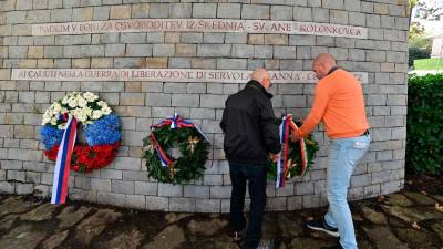 Žrtvam Rižarne se je v imenu Republike Slovenije poklonil Matej Tašner Vatovec, poslanec Levice v slovenskem državnem zboru (FOTODAMJ@N) Tržaška »Spomin na grozote taborišča nas zavezuje k odgovornosti za sedanjost« Martin Poljsak | 23. okt. 2025 | 18:48