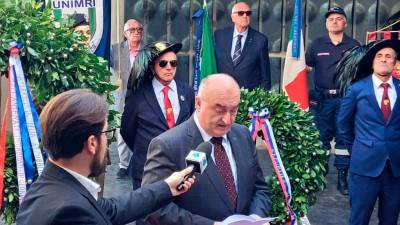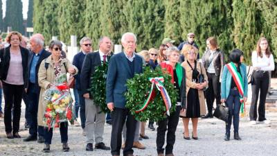 Predsednik deželnega sveta FJK Mauro Bordin med polaganjem venca (DEŽELA FJK) Še Besede opravičila na svečanosti v Gonarsu Ivan Žerjal | 1. nov. 2024 | 17:03