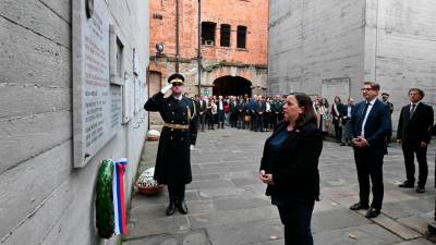 Poklon padlim ministrice Aste Vrečko in delegacije v Rižarni (FOTODAMJ@N) Tržaška »Ohranjanje spomina opozorilo pred ponavljanjem krivic« Sara Sternad | 24. okt. 2024 | 19:32