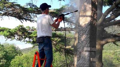 Spomenik bazoviškim junakom so očistili z visokotlačno čistilno napravo Tržaška Izpod umazanije zasijala belina kamna Valentina Sancin | 20. jul. 2020 | 9:57