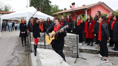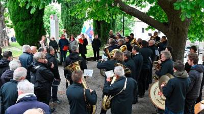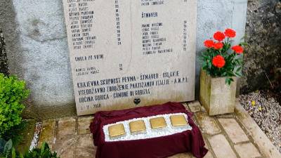 Tlakovce so simbolično odkrili na pokopališču (VIP) Goriška Polaganje tlakovcev pred spomenikom splavalo po vodi Aleksija Ambrosi | 26. apr. 2025 | 6:25