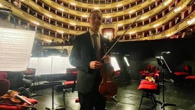 Violinist Aleš Lavrenčič v milanski Scali (FACEBOOK) Goriška Aleš Lavrenčič zaigral v milanski Scali Rossana Paliaga | 21. mar. 2024 | 14:30