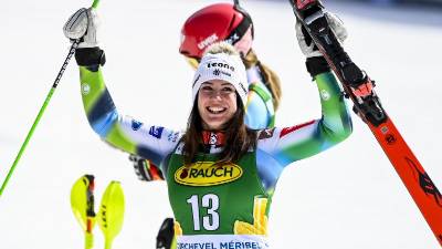 Andreja Slokar, zmagovalka zadnjega slaloma lanske sezone v Meribelu( ANSA ) Šport Andreja Slokar: »Ceniti moraš poraze, sicer ne prideš do zmage« STA | 14. okt. 2022 | 8:30