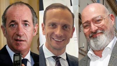 Luca Zaia, Massimiliano Fedriga, Stefano Bonaccini (ARHIV, ANSA) Še Prvi je Zaia, na drugem mestu Fedriga in Bonaccini Jaruška Majovski | 24. maj 2023 | 12:07