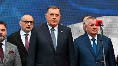 Množica pred sodiščem BiH (ANSA) Še Sodišče BiH Dodika obsodilo na leto zapora STA | 26. feb. 2025 | 14:59