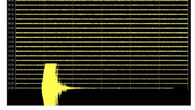 Seizmograf državne mreže potresnih opazovalnic v Tavagnaccu je po 23. uri zaznanil močan potresni sunek (ZAJEM ZASLONA)( ) Še Potres z epicentrom v Bosni in Hercegovini Spletno uredništvo | 23. apr. 2022 | 0:01