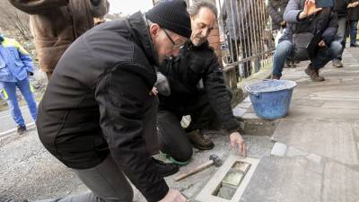 Tlakovce so s pomočjo delavcev tržaške občine položili svojci žrtev in prireditelji (FOTODAMJ@N) Tržaška Deportiranim sovaščanom posvetili petnajst spotikavcev Eva Skabar | 27. jan. 2025 | 19:01
