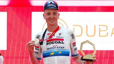 Današnji zmagovalec Belgijec Tim Merlier (FB/UAE TOUR) Šport Pogačar utrdil vodstvo, Merlier osvojil etapno zmago Spletno uredništvo | 21. feb. 2025 | 16:06