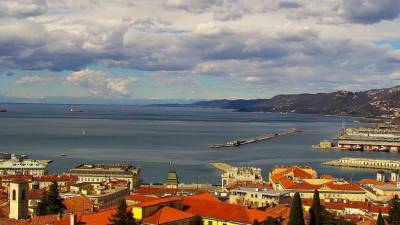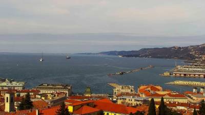 Pogled na Tržaški zaliv ob 11. uri (SPLETNA KAMERA RADIO PUNTO ZERO) Tržaška V FJK sončen in za ta čas (zelo) topel konec tedna Darko Bradassi | 13. dec. 2025 | 11:25