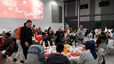 Prostovoljci Skupnosti svetega Egidija pred vhodom v tržaški zapor Tržaška Zapornicam pice, paznikom panetoni Martin Poljsak | 10. dec. 2025 | 12:17