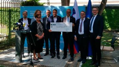 Predsednik ZSKD Karel Ražem (levo) in direktor Mestnega muzeja Idrija Miha Kosmač( Fotodamj@n ) Tržaška Za bolnico Franjo zbrali 2000 evrov Martin Poljsak | 17. dec. 2025 | 9:35