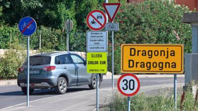 Nov prometni znak pred mejnim prehodom Dragonja (PRIMORSKE NOVICE) Še Od Dragonje do Sečovelj za turiste prepovedano Spletno uredništvo | 5. avg. 2021 | 12:06