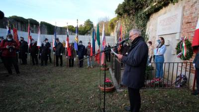 Zgodovinar Borut Klabjan na spominski slovesnost na openskem strelišču (FOTODAMJ@N) Tržaška »Nekateri so se podredili ustrahovanju, drugi so se uprli« Spletno uredništvo | 15. dec. 2020 | 13:03