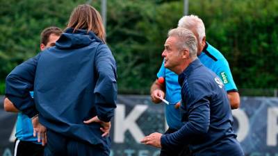 Prvi pomočnik sodnika je od trenerjev ekipe SAK zahteval, da z igralci govorijo nemško in ne slovensko, pri čemer je pomočniku trenerja vratarjev Smrečniku pokazal rumeni karton (SAK CELOVEC/FACEBOOK) Še Rumenega kartona za trenerja SAK Celovec niso preklicali STA | 7. avg. 2025 | 16:28