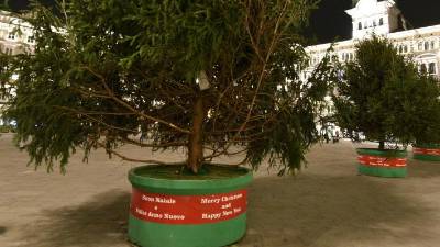 Na Velikem trgu so v petek, 28. novembra, prižgali praznične lučke (LUCA TEDESCHI/FOTODAMJ@N) Tržaška Na Velikem trgu slovensko voščilo le za vzorec Tina Sbarbaro | 29. nov. 2025 | 20:46