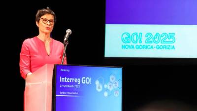 Evropska komisarka za širitev je pred nastopom v Ljubljani v četrtek spregovorila na dogodku Interreg GO! v Gorici (BUMBACA) Še Slovenija zelo spodbuja širitev EU, postopki pa so seveda zapleteni Bojan Brezigar | 30. mar. 2025 | 7:33