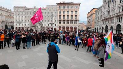 Popoldanska demonstracija proti homofobiji na Velikem trgu (FOTODAMJ@N Tržaška Proti homofobiji in Tuiachu Spletno uredništvo | 20. feb. 2021 | 17:31
