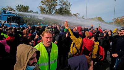 Fabio Tuiach (v rumenem jopiču) med protesti (FOTODAMJ@N) Tržaška Tuiacha odpustili iz službe Spletno uredništvo | 12. nov. 2021 | 12:17