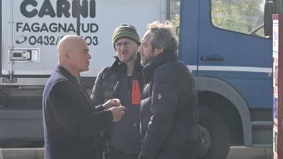 Z leve proti desni Sergio Ballo, Lorenzo Pallotta in Christopher Buchholz (BORGO CINEMA) Goriška Umetniki v izložbi Petra Ciglic | 10. sep. 2024 | 8:55