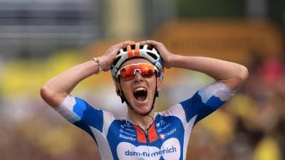 Prvo etapo je zmagal Romain Bardet (ANSA) Šport Prvi z rumeno majico Bardet, Pogačar četrti, Roglič pa varno v glavnini STA | 29. jun. 2024 | 18:20