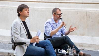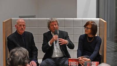Z leve pisatelj Marij Čuk, urednica založbee Mladika Nadia Roncelli in zgodovinar Eric Gobetti( Fotodamj@n ) Tržaška »Fojbe neobzirno politično in ideološko izkoriščajo« Sara Sternad | 28. okt. 2025 | 9:43