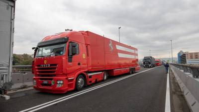 Tovornjaki z dirkalniki formule ena (FOTODAMJ@N) Tržaška Formula 1 preko Trsta v Istanbul Spletno uredništvo | 5. nov. 2020 | 9:57