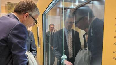 Deželni odbornik FJK Pierpaolo Roberti med ogledom razstave o Josipu Pangercu v Ljubljani (TOFFOLUTTI) Še Odbornik Roberti v Ljubljani odkrival zgodbo Josipa Pangerca Gabriel Milic | 1. apr. 2025 | 10:30