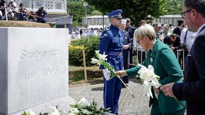 Nataša Pirc Musar polaga cvet v spomin na žrtve pokola v Srebrenici (MATJAŽ KLEMENC/UPRS) Še Predsednica Republike Slovenije se je poklonila žrtvam genocida v Srebrenici Spletno uredništvo | 11. jul. 2025 | 14:27