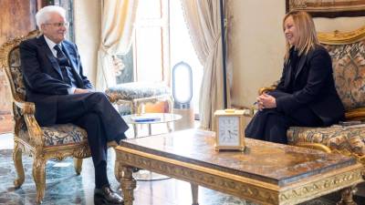 Italijanski predsednik Sergio Mattarella in mandatarka za sestavo nove italijanske vlade Giorgia Meloni (ANSA) Še Giorgia Meloni mandat sprejela brez pridržka Spletno uredništvo | 21. okt. 2022 | 17:49