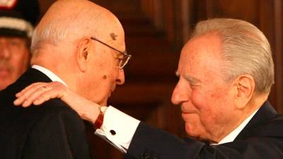 Carla Azeglia Ciampija (desno) je maja 2006 nasledil Giorgio Napolitano (ARHIV) Še Ciampi in Napolitano pomagala Slovencem Sandor Tence | 2. mar. 2021 | 10:03
