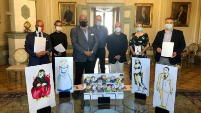 Udeleženci včerajšnje predstavitve v občinski palači (A.C.) Goriška Prihaja čezmejni lutkovni maraton Erika Kosic | 21. avg. 2020 | 6:25