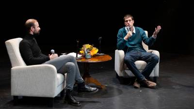 Alessandro Mezzena Lona in Goran Vojnović( TEDESCHI/FOTODAMJ@N ) Kultura Vojnovića žalosti, da ljudje ne najdejo nove skupne domovine Antje Gruden | 12. apr. 2024 | 19:06