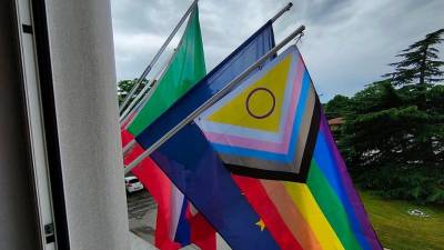 Mavrično zastavo proti homofobiji so na devinsko-nabrežinskem županstvu izobesili tudi lani (ARHIV) Tržaška Na pročelju devinsko-nabrežinske občine mavrična zastava proti homofobiji Spletno uredništvo | 16. maj 2025 | 18:47
