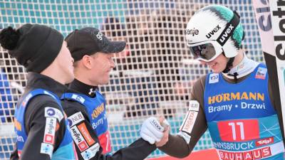 (SMUČARSKA ZVEZA SLOVENIJE/NORDIC FOCUS PHOTO AGENCY/FACEBOOK) Šport Slovenski orli pristali za zmagovalci STA | 3. jan. 2024 | 16:10