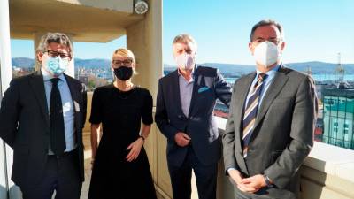 Od leve predsednik pristanišče uprave Zeno D’Agostino, predsednica finančnega holdinga Friulia Federica Seganti, izvršni direktor podjetja Duisburger Hafen Erich Staake in deželni odbornik za infrastrukturo in ozemlje Graziano Pizzimenti (TRŽAŠKO PRISTANIŠČE)