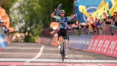 Zmagovalec današnje etape Francoz Valentin Paret-Peintre (GIRO D’ITALIA/FACEBOOK) Šport Jan Tratnik tretji za francoskima kolesarjema STA | 14. maj 2024 | 17:37