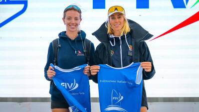 Caterina Sedmak (druga z leve) in Federico Figlia di Granara sta prvaka med U24 (FIV/MARTINA ORSINI) Šport Germani državna prvakinja 49erFx, Sedmak podprvakinja Nacra17 Erik Piccini | 5. nov. 2025 | 9:47