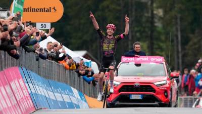 Nemški kolesar Georg Steinhauser (EF Education-EasyPost) prvi na današnjem cilju (GIRO D’ITALIA/FACEBOOK) Šport Steinhauserju gorska etapa, Pogačar še povečal naskok STA | 22. maj 2024 | 17:23