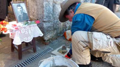 Gunter Demnig je prvi kamen spotike v Doberdobu postavil lani v spomin na Andreja Frandoliča (BUMBACA) Goriška V Doberdobu bodo postavili še tri kamne spotike Spletno uredništvo | 24. jan. 2019 | 9:15