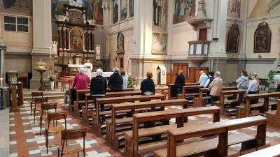 Včeraj zvečer je v Štandrežu po dolgem času potekala večerna maša (BUMBACA) Goriška Verniki lahko spet k maši Costanza Frandolic | 19. maj 2020 | 9:55