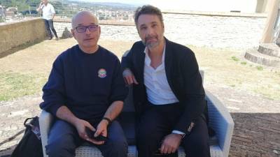 Duhovnik Karel Bolčina z igralcem Raoulom Bovo (OSEBNI ARHIV) Goriška Štandreški župnik je Raoulu Bovi pomagal, da je postal »don Massimo« Danjel Radetič | 22. sep. 2021 | 14:20