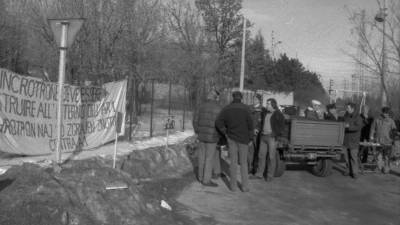 Pozna 80. leta so popestrili protesti proti nastanitvi sinhrotrona pri Bazovici( Mario Magajna / OZE NŠK ) Tržaška Trideset let enostranskega odnosa Jadran Vecchiet | 21. dec. 2023 | 6:25