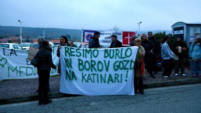 Protestniki so izrazili nasprotovanje napovedanemu poseku borov v gozdiču na Katinari( Tedeschi/Fotodamj@n ) Tržaška Odločen »ne« sečnji borovega gozdiča Spletno uredništvo | 28. nov. 2024 | 17:08