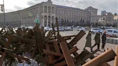 V Kijevu protitankovske ovire danes spominjajo na padle ukrajinske vojake (ANSA) Še Življenje v vojni med stisko in vero v zmago Mitja Tretjak | 24. feb. 2023 | 16:24