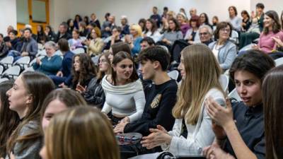 Publika v šolskem avditoriju (BUMBACA)( Daniele Tibaldi ) Goriška »Zaboli me, ko starejši mladim govorijo, da njihov jezik ni dober« Petra Ciglic | 22. apr. 2024 | 6:25