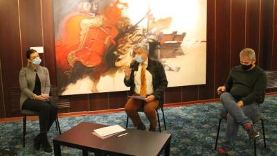Od leve Francesca Iancig, Igor Komel in Paolo Hmeljak (KULTURNI DOM) Goriška Razstava Klavdija Palčiča uvod v virtualno 39-letnico Aleksija Ambrosi | 23. nov. 2020 | 14:54