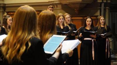 Komorni zbor Vikra pod vodstvom Petre Grassi v dvorani Tergeste hotela Savoia (LUCA TEDESCHI/FOTODAMJ@N) Kultura Komorni zbor Vikra navdušil v hotelu Savoia Katja Kralj | 17. dec. 2025 | 17:18