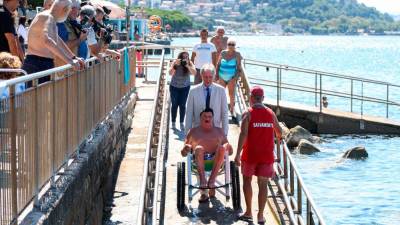 Občina je nakupila elektronsko ročico za dvigovanje hendikepiranih oseb ( Tedeschi/Fotodamj@n ) Tržaška Nov pripomoček za dostopnejše kopanje Valentina Sancin | 5. jul. 2025 | 8:22