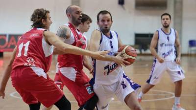 Bor Radenka (v belih dresi) je po prvem polčasu vodil s 14 točkami naskoka (TEDESCHI/FOTODAMJ@N) Šport Zapravljena priložnost za Bor, podvig Kontovela v Žavljah Erik Piccini | 22. nov. 2025 | 22:28